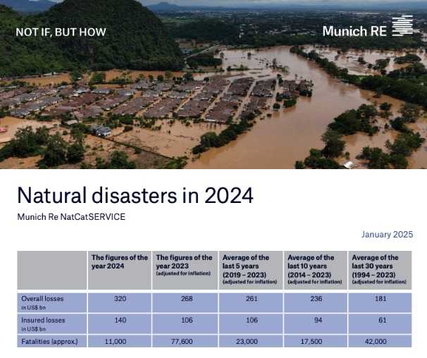 慕尼黑再保险报告:2024年自然灾害损失高达3200亿美元