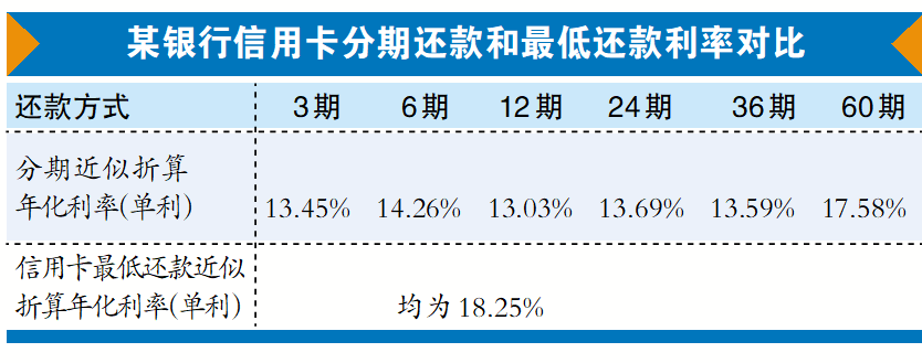 最低还款长期成本高于分期还款