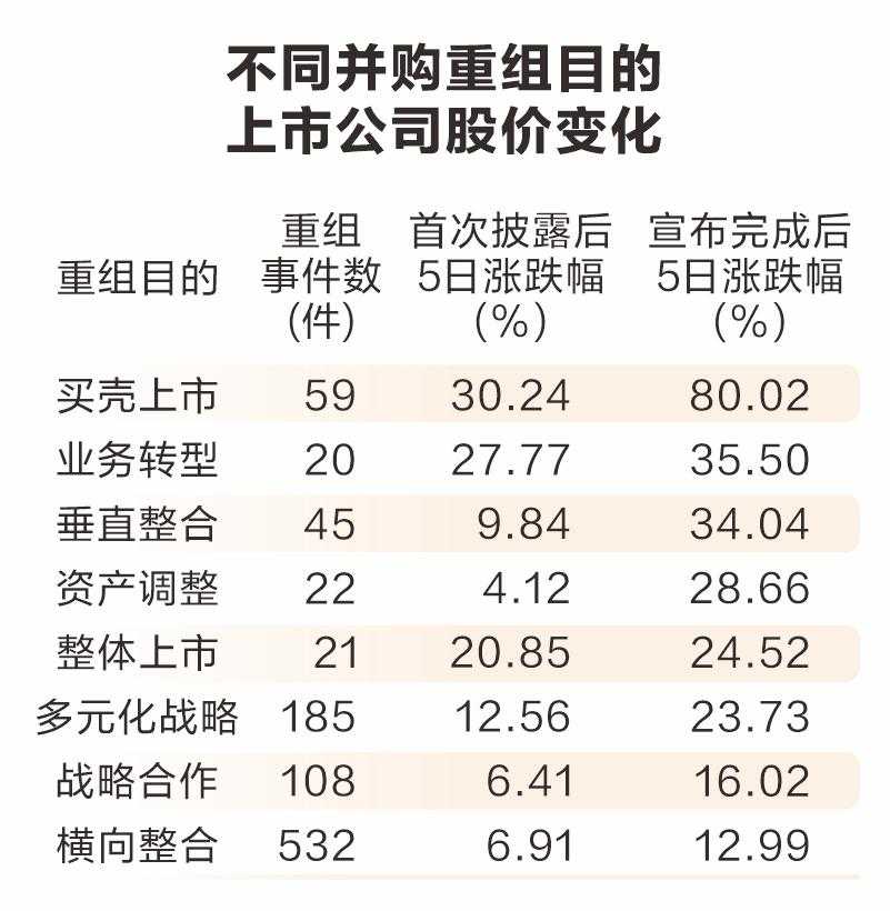 二、并购重组对股价的积极影响