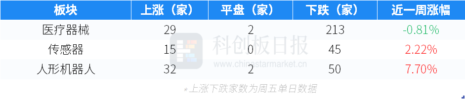 作为对比,本周医疗器械、传感器及人形机器人等细分领域的二级市场表现详见下表: