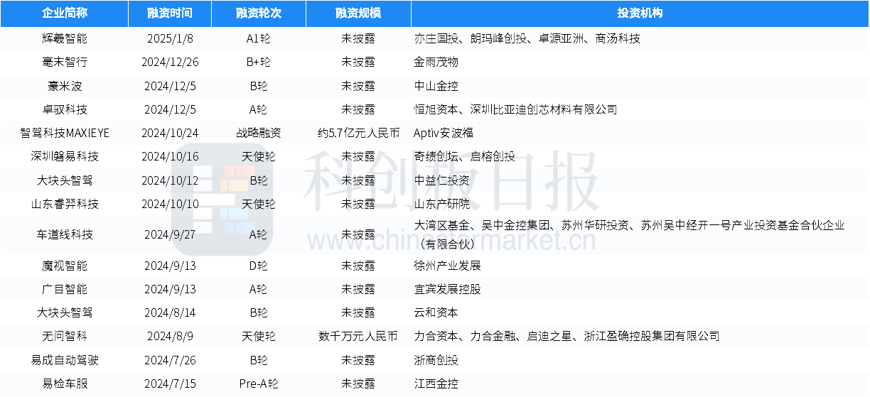 近一年来,国内智能驾驶领域部分获投案例详见下表: