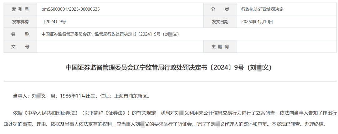 辽宁证监局披露的罚单显示,刘某义在担任某资产管理有限公司高级投资经理期间,利用其职务便利,知悉了所管理产品的未公开股票投资交易信息,并亲自参与及明示他人参与趋同交易。最终,刘某义被没收违法所得2077.32万元,并处以4354.64万元罚款,罚没总金额高达6431.96万元。同时,他还被禁入市场10年。