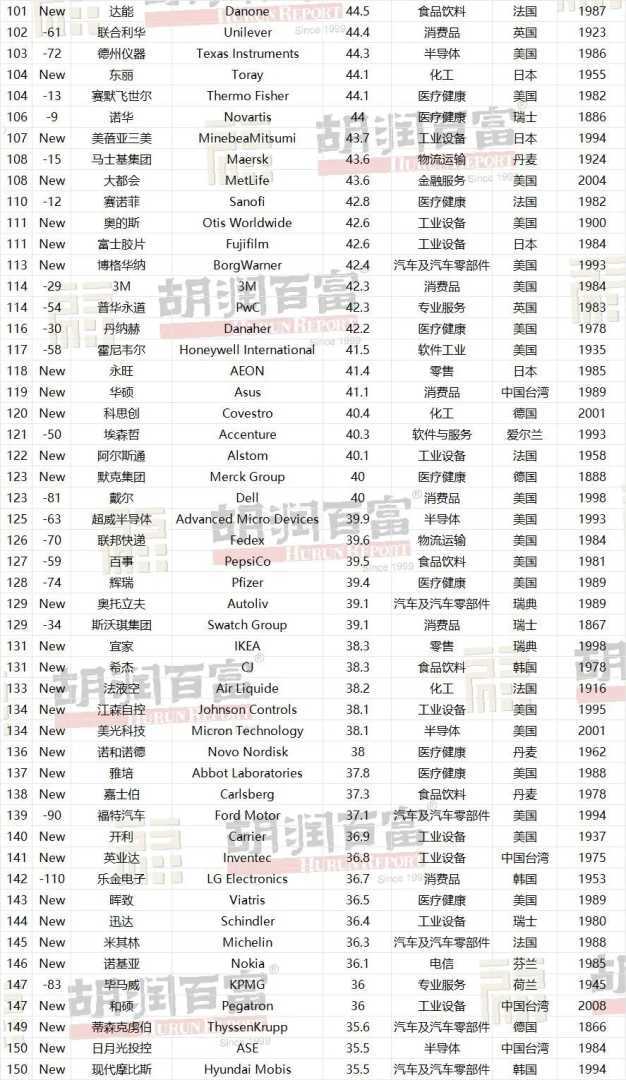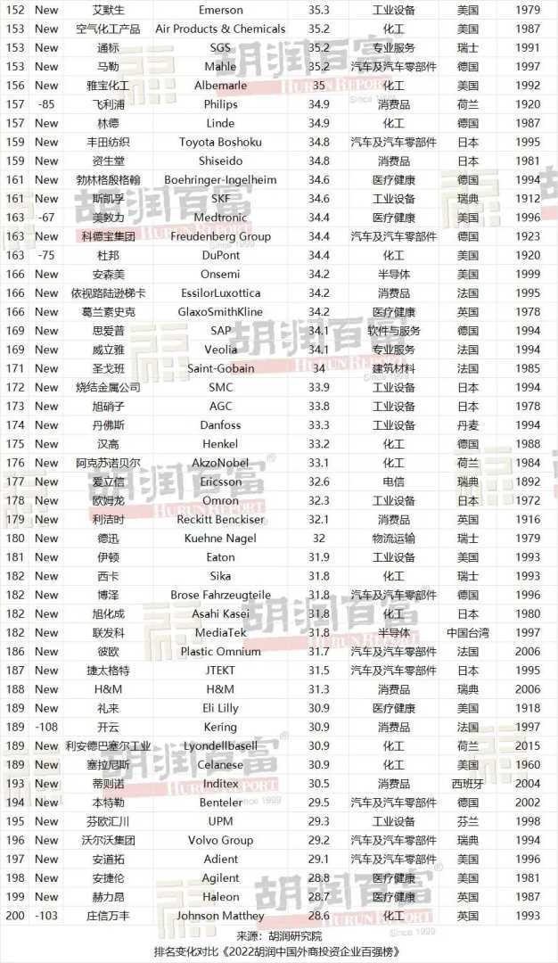 胡润发布中国外商投资企业200强榜单