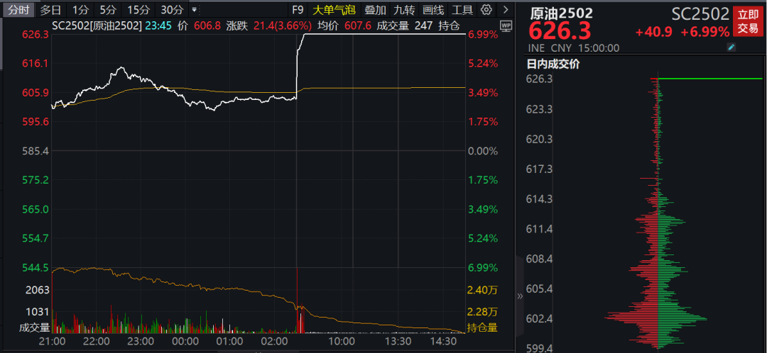 1月13日,国内商品期市开盘后,多数品种呈现上涨态势,其中能化品板块表现尤为突出,燃油、原油主力合约均触及涨停。截至当日下午收盘,主力合约中原油涨幅达到6.99%,燃油上涨7%,丁二烯橡胶也上涨了5.1%。