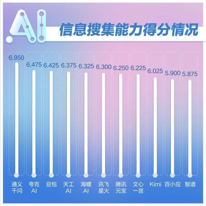 在信息搜集能力方面,通义千问以6.95分位居榜首,夸克AI紧随其后。讯飞星火初期无法回答某题,但后期已能完整生成。多款大模型因理解偏差或忽视时间限制导致分数被拉低。在实际应用中,需谨慎选择和使用模型,对有时间限制的问题可进行多次生成。