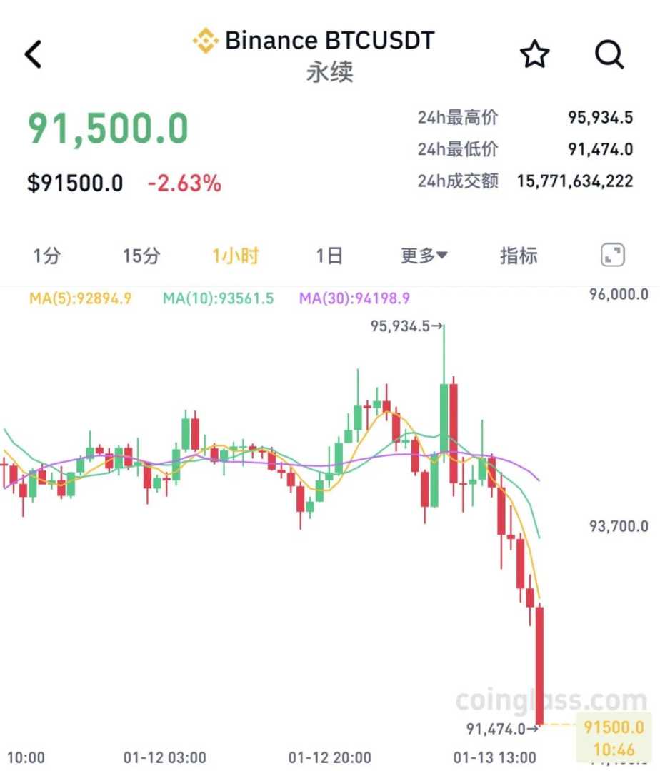 CoinGlass行情数据显示,比特币价格在短时间内大幅下跌,半天内一度跌去4500美元/枚。截至发稿时,比特币报价为91500美元/枚。这一跌幅不仅让投资者措手不及,也引发了市场的广泛关注和讨论。