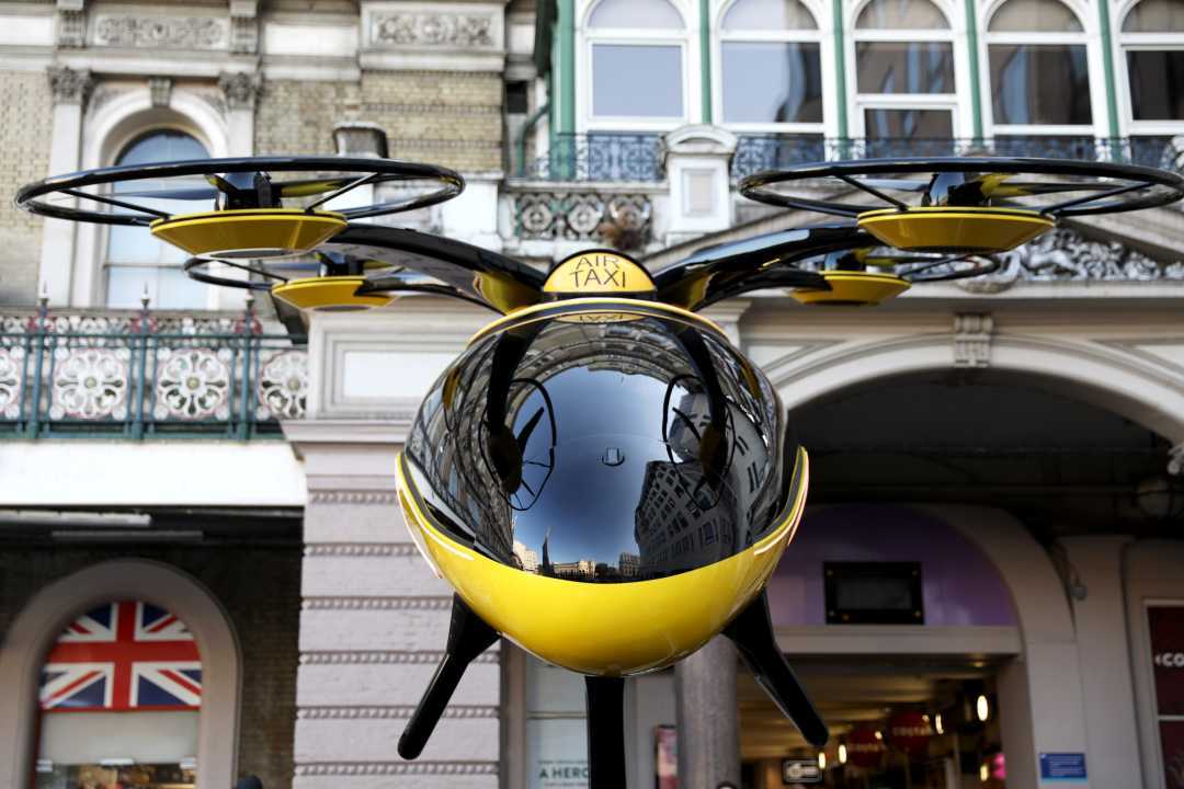 这是2024年10月11日在英国伦敦查令十字火车站的出租车等候处拍摄的“空中出租车”。新华社记者李颖摄
