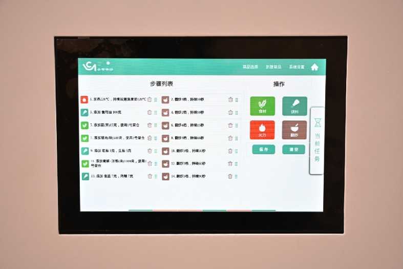 科慧科技董事长陈志宏介绍,炒菜机器人的操作非常简便,只需将切好的蔬菜放入柜体,机器人便能自动投放调料、翻炒菜品。从食材投放到菜品出锅,整个过程都在精准的程序控制之下,短短几分钟内,便能炒出一份色香味俱全的美味佳肴。