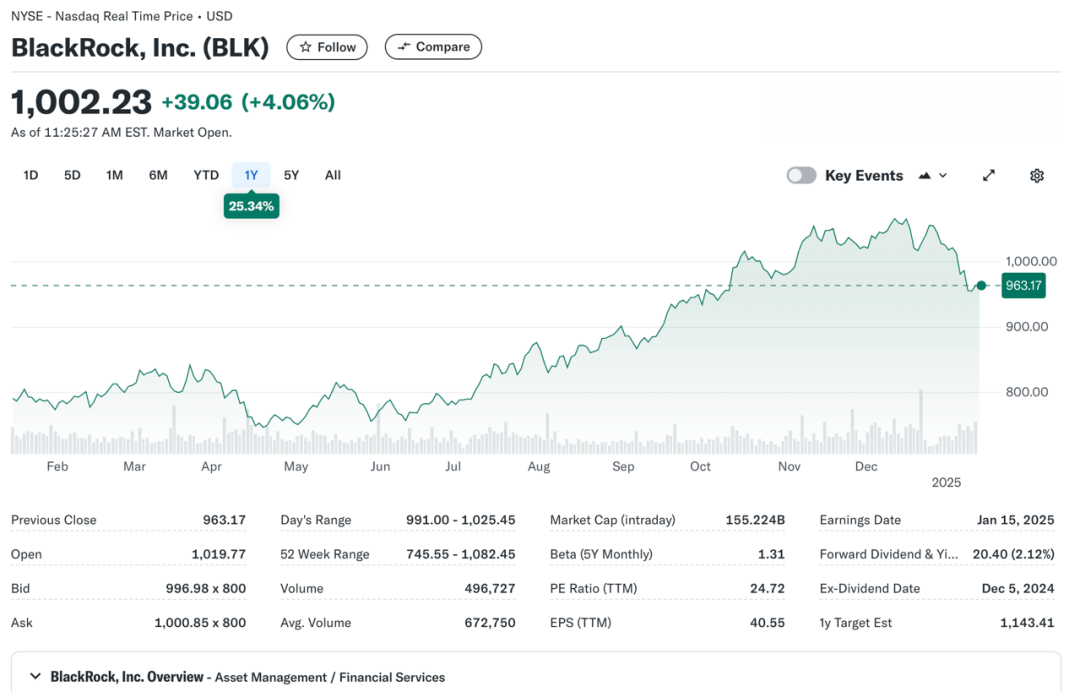 贝莱德集团发布2024年财务业绩,资产管理规模达11.6万亿美元,创历史新高。ETF成为规模增长主要驱动力,比特币ETF表现抢眼。同时,贝莱德加速布局非公开市场,完成多起重大收购。