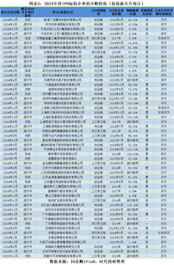 在“并购六条”政策的提振效应之外,2024年并购市场还呈现出另一大亮点:A股上市公司对曾申报IPO企业的并购活动同步增长,这些企业因经历过上市辅导,在合规性、业务模式及经营管理方面表现相对优异。