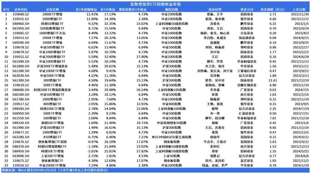 被动跟踪+主动管理!33只指数增强型ETF超额收益揭秘
