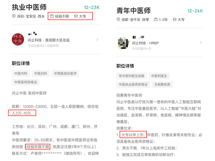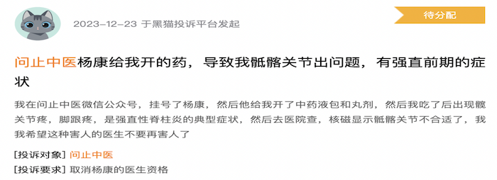 尽管问止中医在复诊率及治疗效果方面展现出亮眼数据,但患者体验并非全然一致。有患者反映,在问止中医就医后,病情并未得到明显改善,甚至有人出现身体不适的情况。招股书显示,公司曾为解决客户投诉而支付金钱赔偿。此外,还有前员工透露,公司对医师有绩效要求,且对出诊率、复诊率均有严格规定。