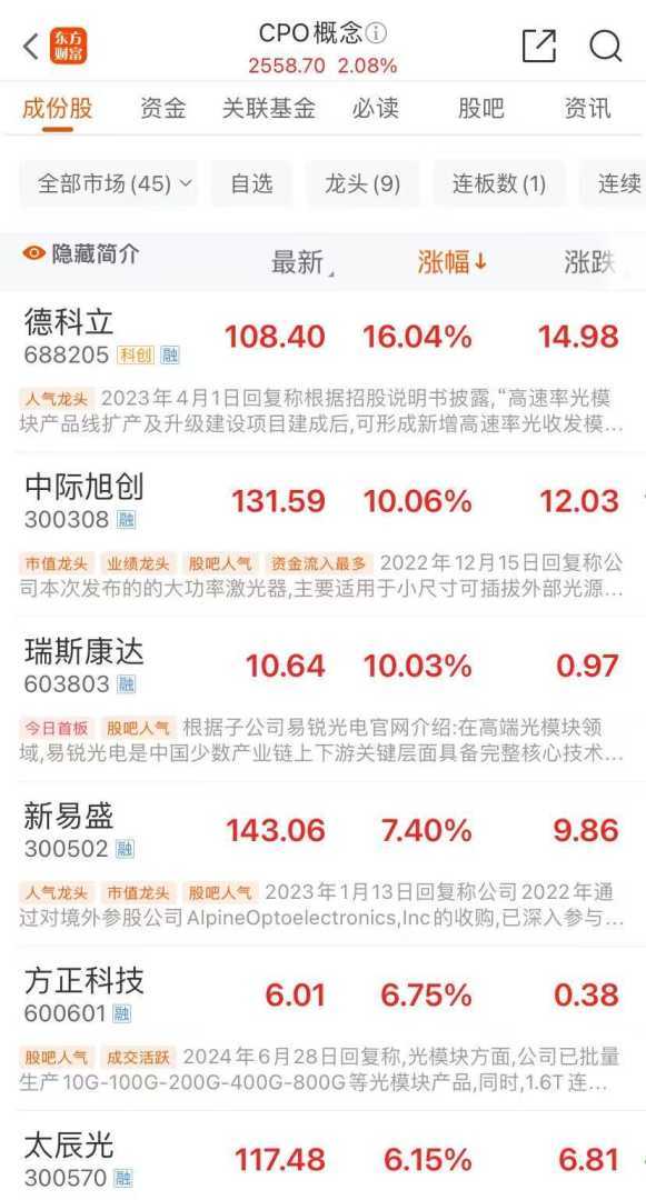 工业富联强势涨停,截至发稿时,涨停板上仍有超过112万手的封单,其最新市值高达4634亿元。光模块领域的三剑客——中际旭创、新易盛、天孚通信携手大涨,其中,中际旭创涨幅达到9.99%,成交额高达80.4亿元,位居A股市场之首。此外,欧陆通、胜宏科技涨幅超过13%,德科立涨幅超过12%,英维克、太辰光、博创科技等个股也纷纷创下历史新高。沪电股份、沃尔核材、方正科技等概念股同样表现出色,迎来大涨。