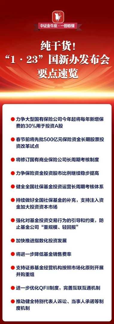 1月23日,国新办就推动中长期资金入市、促进资本市场高质量发展的情况举行了新闻发布会。此次发布会聚焦如何有效引导和鼓励商业保险公司、社保基金、基金证券公司等机构加大投资股票市场,明确了具体目标、考核标准及实施举措。