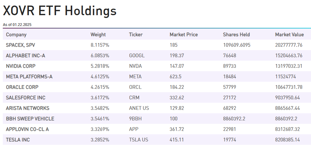 SpaceX股票助力XOVR ETF资金大幅流入