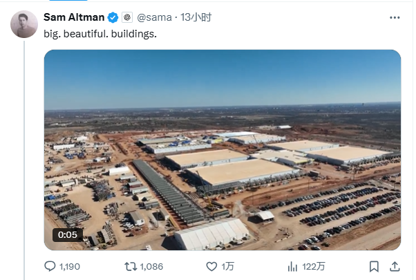 周四,OpenAI首席执行官奥尔特曼在其社交媒体账号上发布了一段短视频,展示了位于得克萨斯州阿比林(Abilene)的星际之门首期工厂建设现场,进一步证实了该项目的真实性。