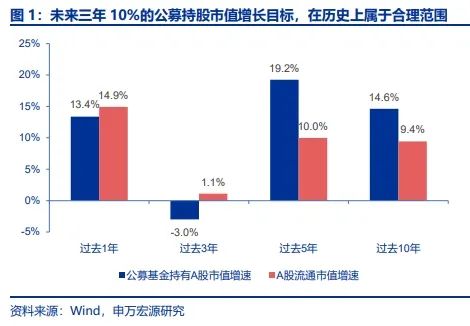 1. 公募持有A股流通市值增长10%的目标:历史可鉴,机遇为先。 历史上,公募基金持有A股市值的年化增速曾高达14.6%,快于A股流通市值的年化增速(9.4%)。尽管近年来A股行情偏弱,但管理层正通过大力推动指数创设和指数产品发行,力求实现未来三年公募持股市值增长10%的目标。这一目标的达成,需以A股市场迎来新的机遇为前提。