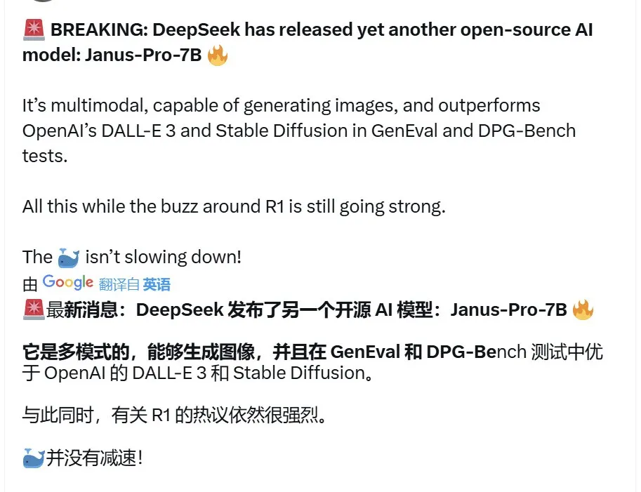 此外,AI概念股和量子计算概念股也普遍收跌,核电概念股更是全线暴跌。值得注意的是,DeepSeek在遭遇大规模恶意攻击的同时,仍宣布发布了开源多模态人工智能模型Janus-Pro,并在GenEval和DPG-Bench基准测试中击败了OpenAI的DALL-E 3和Stable Diffusion,进一步巩固了其市场地位。