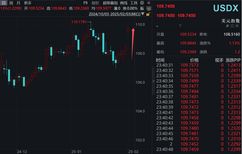 此外,美元的大幅走强也对加密货币市场构成了压力。今日,美元指数涨幅超过1%,印度卢比、墨西哥比索、欧元等货币纷纷走弱。分析人士指出,押注关税将加剧通胀压力并保持美国利率高位是美元走强的主要原因之一。同时,关税对外国经济的伤害也大于美国,这增加了美元的避险诱惑。