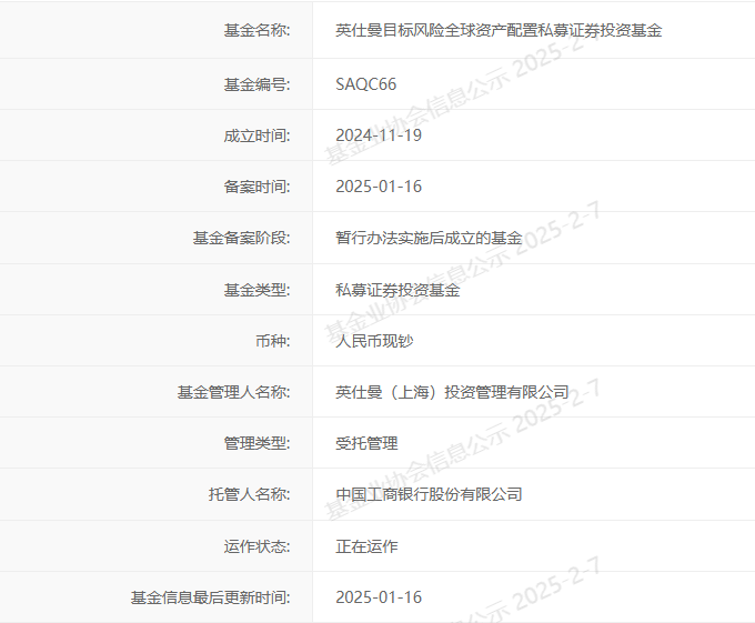 此外,值得注意的是,全球知名对冲基金英仕曼旗下的英仕曼(上海)投资管理有限公司也在今年1月成功备案了一只新产品——英仕曼目标风险全球资产配置私募证券投资基金。这一举动进一步证明了外资私募对中国市场的浓厚兴趣和积极态度。