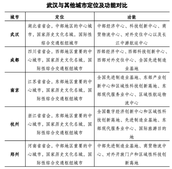 在对区域中心城市的定位中,武汉没有使用“重要的”这一定语,这通常代表“唯一性”,强调了武汉在中部地区的绝对龙头地位。