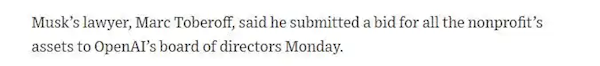 据马斯克的律师托贝罗夫透露,他们已正式向OpenAI董事会提交了该收购要约,表现出极高的诚意和决心。