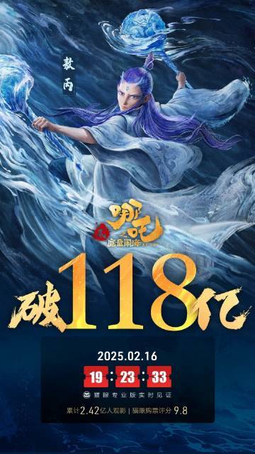 《哪吒之魔童闹海》票房破118亿,国产动画电影再创佳绩