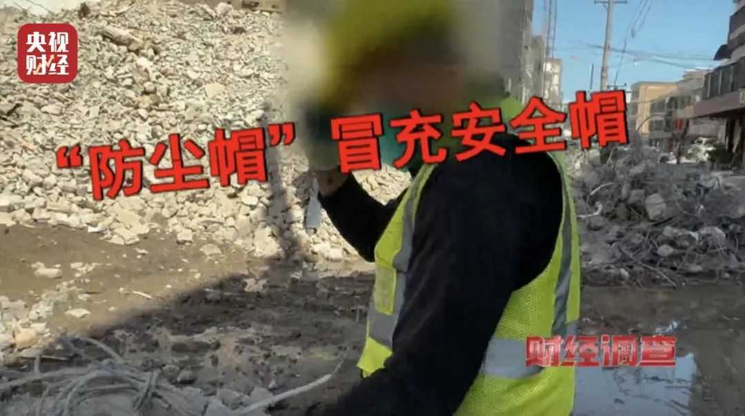 记者在多个建筑工地走访时发现,工人不佩戴安全帽、佩戴过期安全帽,甚至用所谓“防尘帽”冒充安全帽的乱象屡见不鲜。