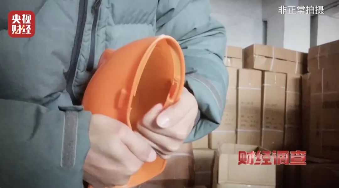 在山东临沂开拓塑料制品厂,记者发现仓库里堆满安全帽,随手拿起一顶向内施压即变形。厂家承认,部分产品掺有再生料。