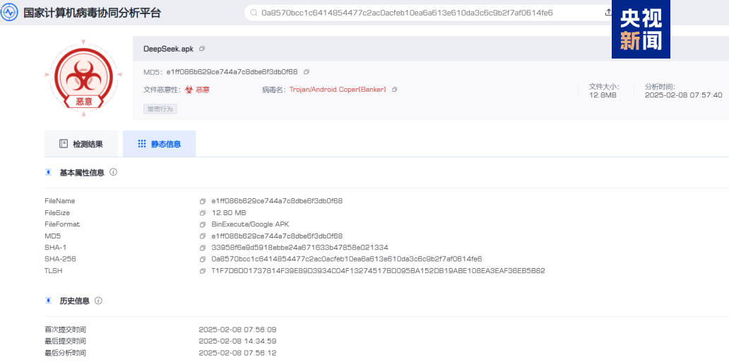 国家计算机病毒应急处理中心发现仿冒DeepSeek官方App的安卓平台手机木马病毒,窃取用户隐私,进行金融盗窃。建议用户通过官方渠道下载App,保持安全软件更新,警惕诈骗话术。