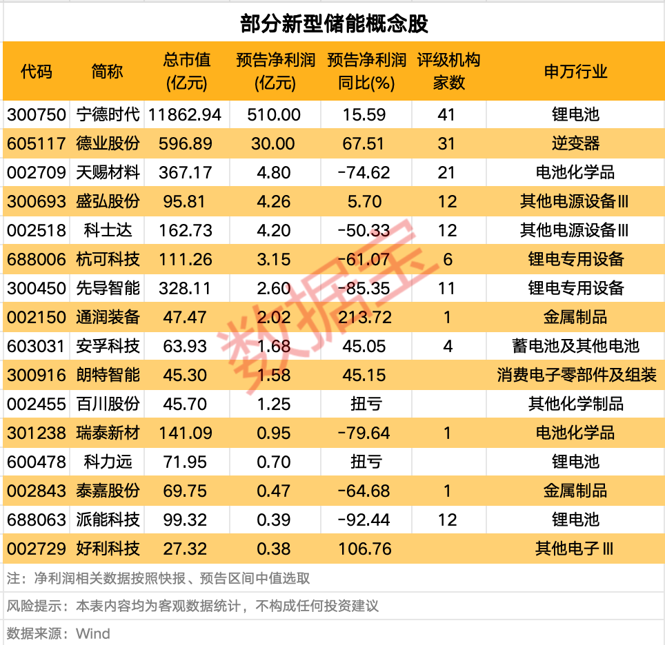 证券时报·数据宝统计显示,部分新型储能概念股已预告盈利,共计16只。