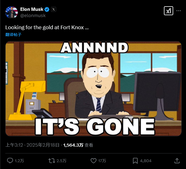 “谁能证实诺克斯堡的黄金没有被盗?黄金是属于美国公众的,我们有权知道它是否还在。”马斯克回应道。