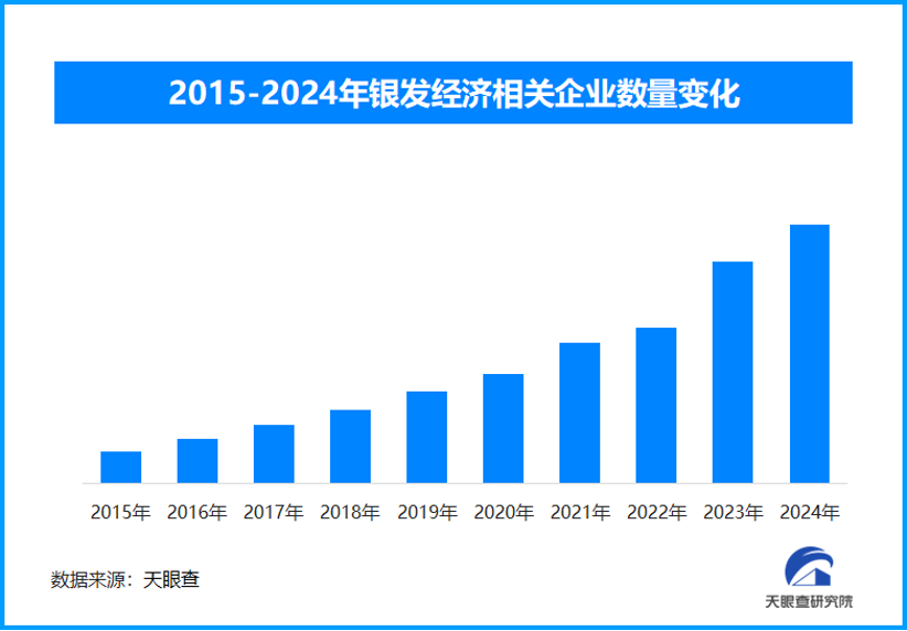 根据天眼查专业版数据显示,截至目前,我国现存的银发经济相关企业已超过35.1万家,其中2024年新增注册相关企业超7.1万家。从注册数量趋势来看,近十年来,银发经济相关企业呈现出逐年增长的态势,并在2024年达到了历史峰值。