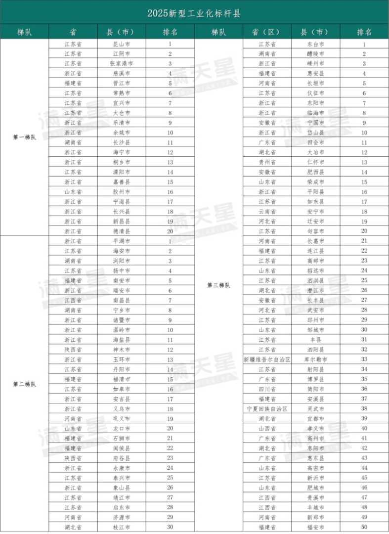 2025新型工业化标杆县名单:江苏、浙江领跑新型工业化标杆县名单,展现两省在工业发展上的强劲实力。