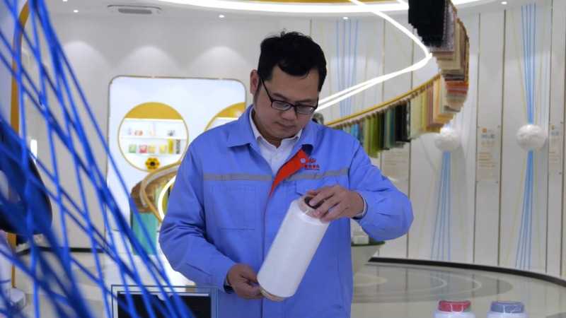 福建永荣锦江自主研发的环保再生绿色产品“爱赛纶”。新华社记者宓盈婷、林凯摄