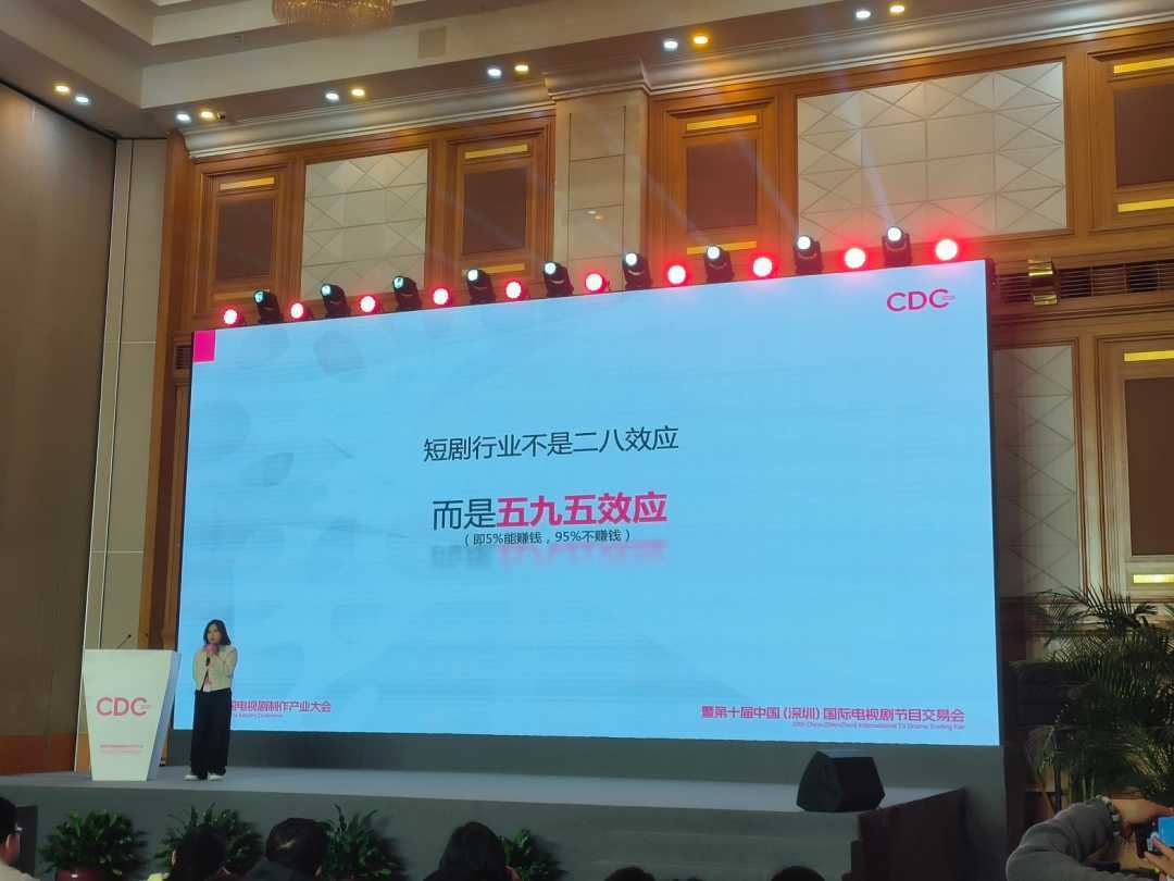 北京好有本领文化传媒有限公司CEO郑安迪在中国电视剧制作产业大会上表示,微短剧行业并非二八效应,而是五九五效应,即5%能赚钱,95%不赚钱。她认为,短剧不是奢侈品而是快消品,要用效率对抗爆款率。这一观点得到了多位业内人士的认同。