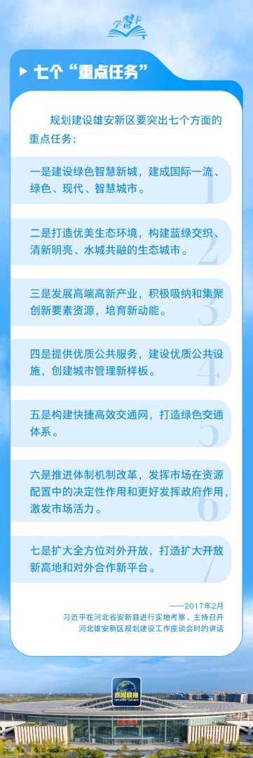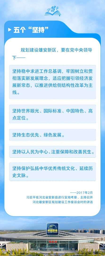 如今,雄安新区正以惊人的速度崛起,一座现代化城市正在这里拔地而起,创造了令人瞩目的奇迹。雄安新区的建设不仅牵动着全国人民的心,更成为了国家发展的重要一环。习近平总书记在不同场合多次提及雄安发展规划,每一次发言都掷地有声,为雄安新区的发展指明了方向。让我们一同回顾并学习这些重要的指示精神↓