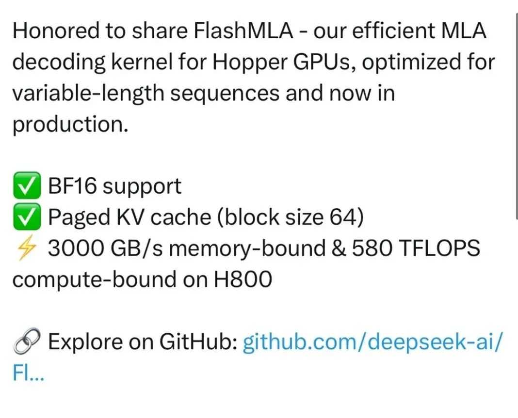 DeepSeek开源高效MLA解码内核,加速AI发展