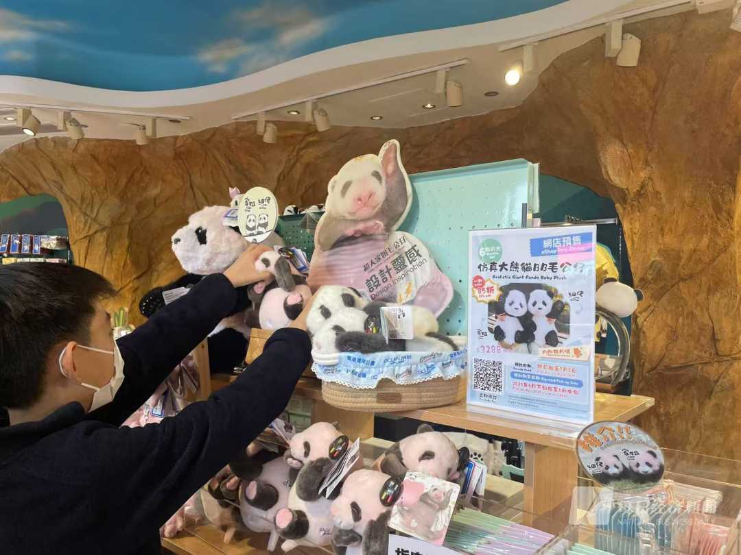 大熊猫展馆出口直通主题纪念品店,店内同样热闹。近期最畅销的纪念品是售价288港元的“超人家姐熊猫毛公仔”。