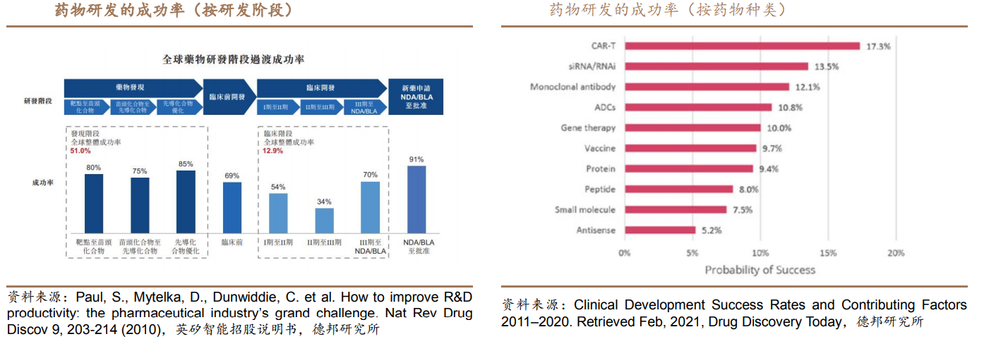 1. 药物开发面临高风险、长周期、高成本挑战。全球药物发现成功率仅51%,临床阶段成功率更低。研发过程耗时长、投资巨大。