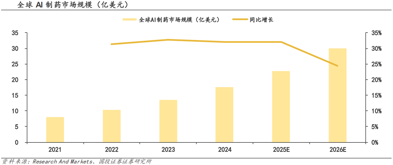2. 全球AI制药市场规模快速增长,预计2026年将达到29.94亿美元。国内市场规模同样迅猛增长,CAGR高达53.01%。
