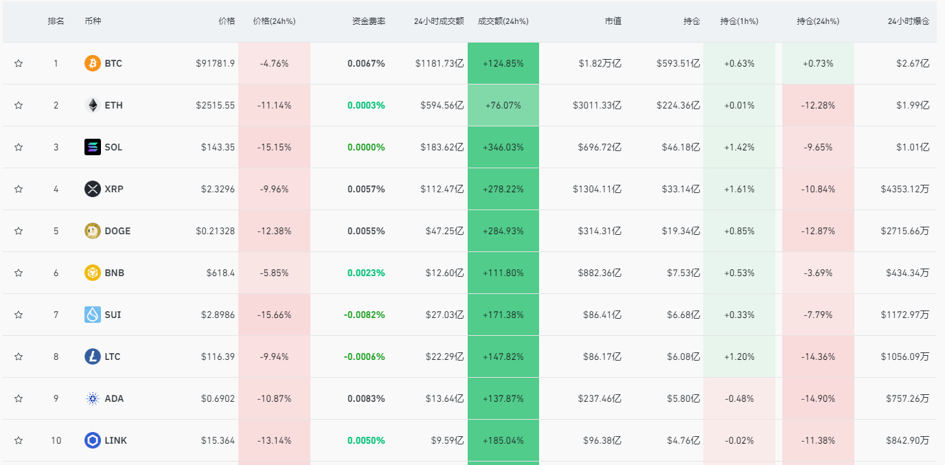 2月25日,比特币等加密货币市场遭遇重创,比特币价格暴跌至92000美元以下,以太坊更是一度跌破2500美元的关键支撑位。截至8时31分,数据显示,比特币在最近24小时内跌幅达到4.61%,报价91877美元;以太坊则下跌超过11%,报价2514美元。
