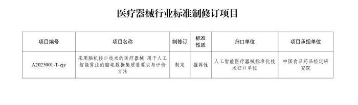国家药监局综合司近日发布重要通知,为加速推进采用脑机接口技术的医疗器械发展,满足监管迫切需求,已正式批准《采用脑机接口技术的医疗器械用于人工智能算法的脑电数据集质量要求与评价方法》行业标准制修订项目。该项目旨在通过快速程序,依据《医疗器械标准制修订工作管理规范》,高效开展标准的起草、验证、征求意见及技术审查,确保标准的先进性和实用性。