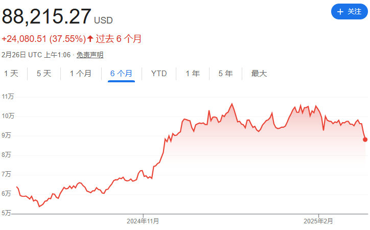 美国社会正笼罩在滞胀的担忧之中,导致大量投资者紧急避险,美股与其他风险资产持续下跌,其中,被视为特朗普政府标志性资产的比特币价格已创下三个月新低,加剧了市场的不安。
