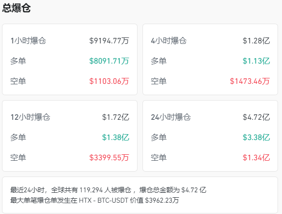 在此轮剧烈波动下,多位加密货币投资者损失惨重,血本无归。据Coinglass数据显示,仅在过去24小时内,就有近12万人因市场波动而爆仓。