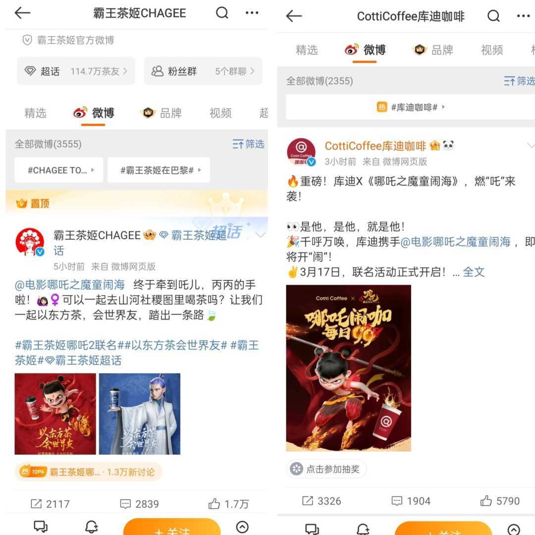 今年春节档,茶饮与咖啡品牌联名活动频繁。如瑞幸咖啡与《封神第二部:战火西岐》联名推出限定饮品,库迪咖啡购买《蛟龙行动》电影票赠送免费券,蜜雪冰城推出《熊出没》主题店等。
