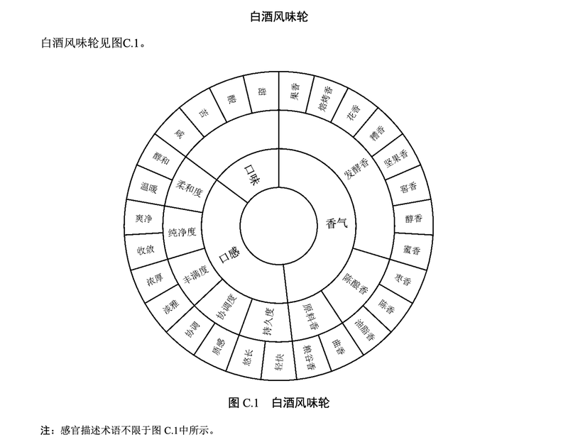 白酒风味轮。 《白酒质量通则》国家标准(征求意见稿)截图。