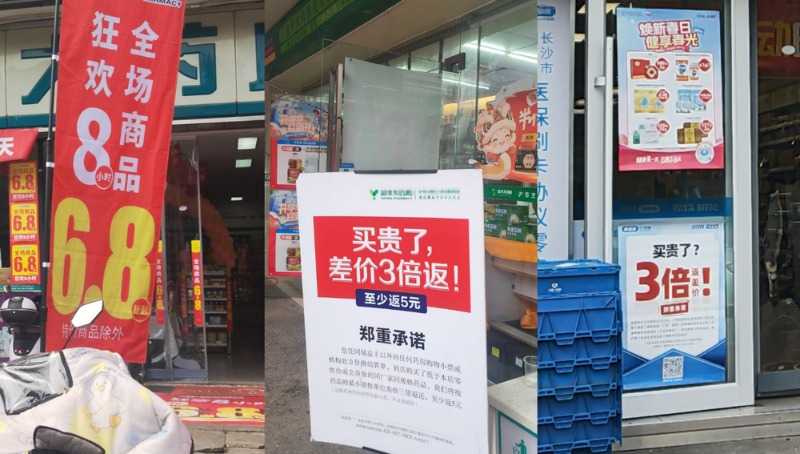 竞争白热化:在长沙市星沙区某社区,一条约600米的街道上密集分布着6家药店(含1家医药超市和1家社区诊所)。常住人口14000多人的社区内,每家药店店均服务人数不足2500人。如此过度饱和的布局让竞争变得异常激烈,一毛钱的差价就可能导致顾客流失。