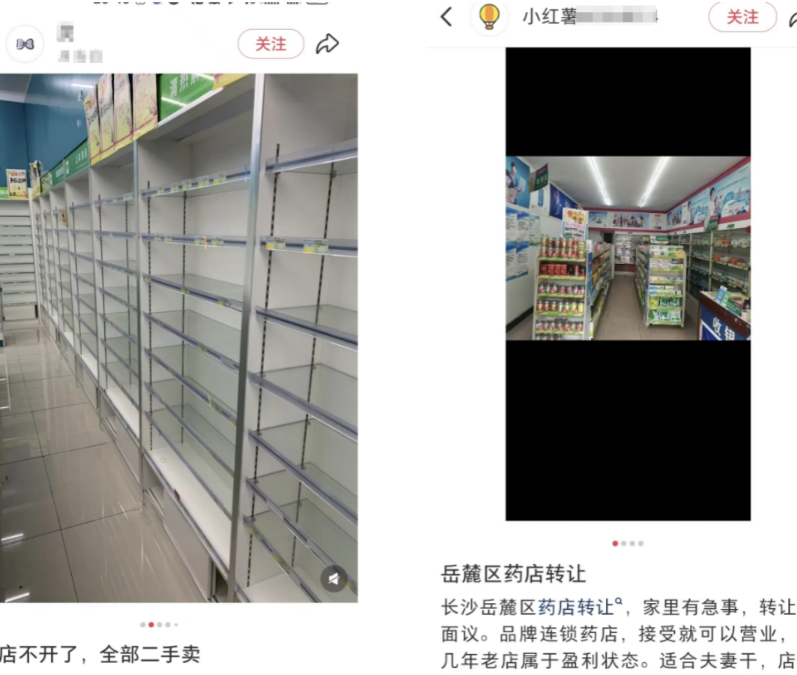行业寒冬下,转让门店甚至关店成为众多店主的选择。在小红书上,有多条药店“旺铺”转让信息。