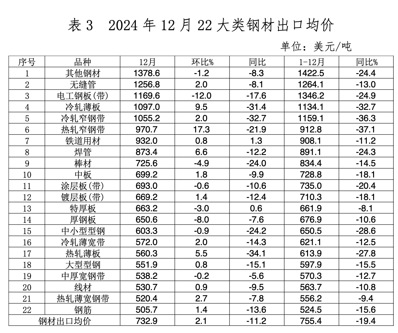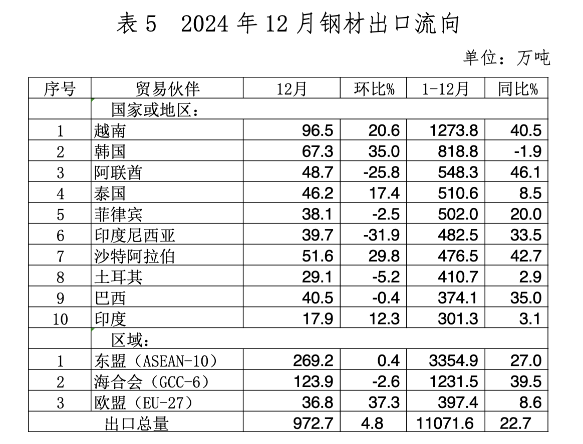 根据中国钢铁工业协会的统计,2024年我国累计出口钢材达到历史第二高位,同比增长22.7%,但出口均价同比下降19.4%。这意味着,虽然出口量增加了,但利润却在减少。